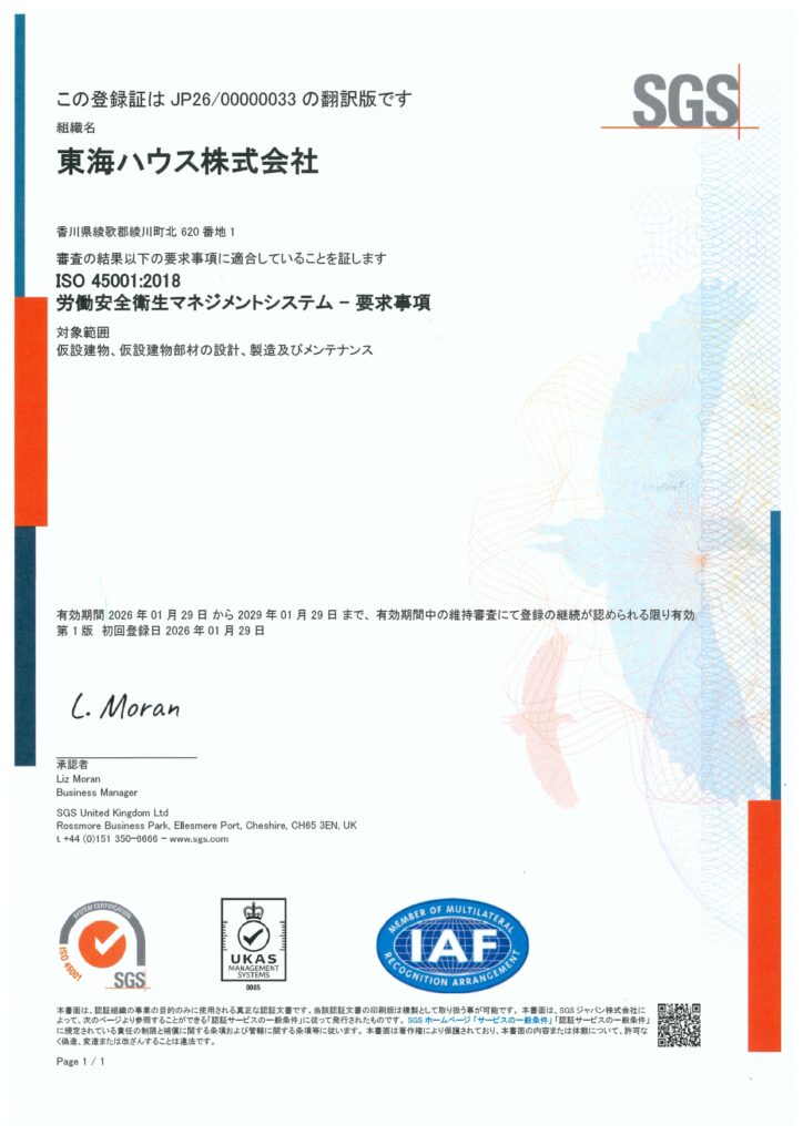 本認証は、2025年10月に第一段審査、2025年12月に第二段審査を受審し、当社の労働安全衛生に関する取り組みが国際規格に適合していることが認められたものです。